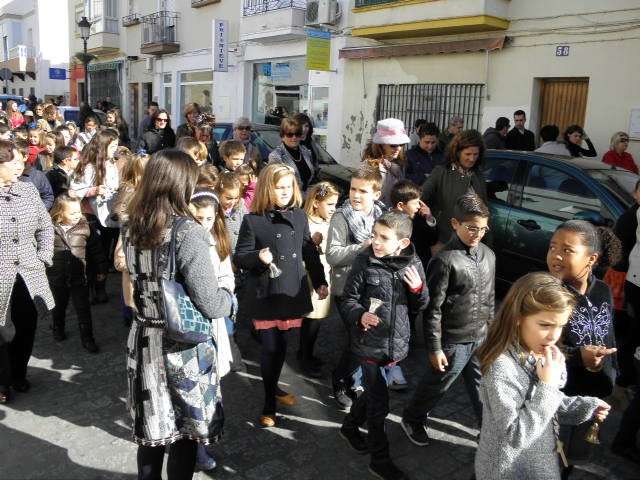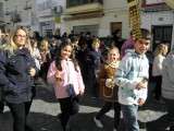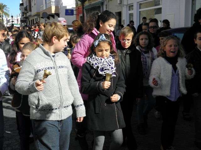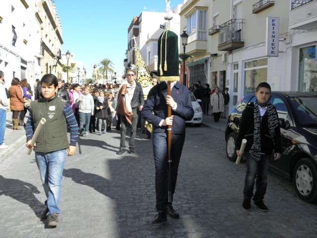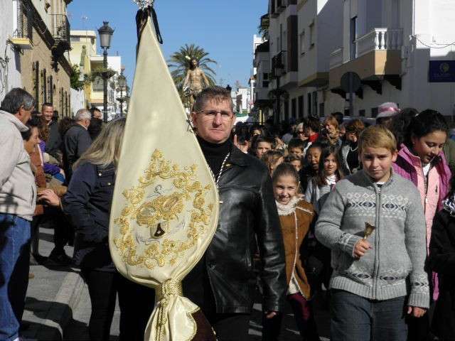 A la una menos cuarto de la tarde, la imagen del Resucitado salía de su templo parroquial y tomaba un tramo de la calle Calvario, continuaba por Nuestra Señora la Esperanza del Calvario y enfilaba la calle Francisco Lucero para llegar hasta el paseo marítimo. En el corto traslado, de unos 15 minutos aproximadamente, abrían la comitiva la bandera y estandartes de la Hermandad del Amor y casi medio centenar de niños agitando campanillas. Un sonido que ha llamado la atención de los vecinos de la barriada de El Molino y de peatones que pasaban por esta zona a esa hora. Muchos se han sumado a esta celebración eucarística que ha estado oficiada por el cura párroco y director espiritual de la hermandad, Carlos Redondo Redondo. Antes del comienzo de la misa, el padre emérito Juan González Lagomazzinni, tomaba la palabra. Como impulsor de esta hermandad, la más joven de la localidad, y habiendo empleado más de 50 años de su vida dedicado a la vida parroquial en la iglesia del Carmen, ha agradecido a los fieles su presencia y ha deseado que la eucaristía con motivo de la festividad de Cristo Rey fuera "algo bonito para Rota y para la parroquia".