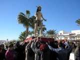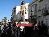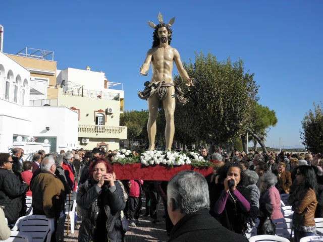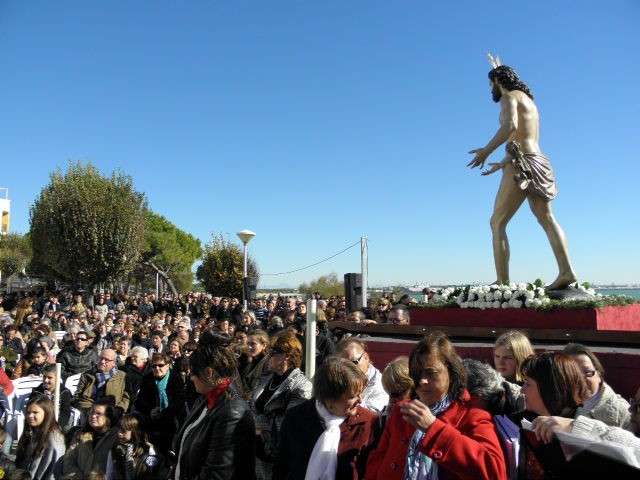 Esta celebración eucarística ha tenido además de especial la presencia de la imagen de Cristo Resucitado que ha sido trasladado en parihuela por parte de las mujeres cargadoras de la hermandad, dirigidas por Alfonso Bernal, para presidir la misa al aire libre. Pese al viento frío que hoy sopla, la organización ha elegido un recoveco en el paseo marítimo que ha permitido resguardarse de las rachas de viento, haciendo la estancia para los fieles mucho más agradable.