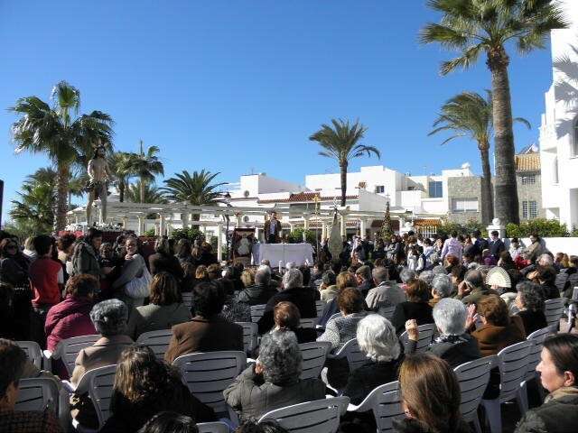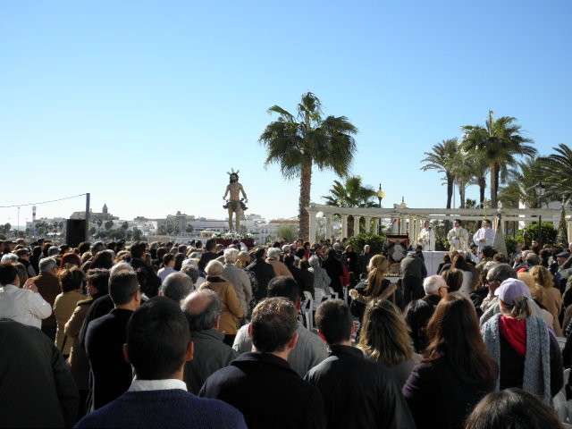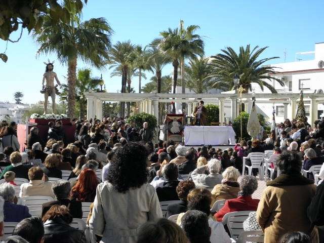 La comunidad parroquial de la iglesia de Nuestra Señora del Carmen ha acudido esta mañana a la eucaristía que con motivo del día de Cristo Rey se ha celebrado fuera de los muros de la parroquia llevando el altar al paseo marítimo del Rompidillo. Un punto en el que se han concentrado muchos fieles para escuchar la misa con la que la Hermandad del Amor ha celebrado también el final del Año de la Fe.