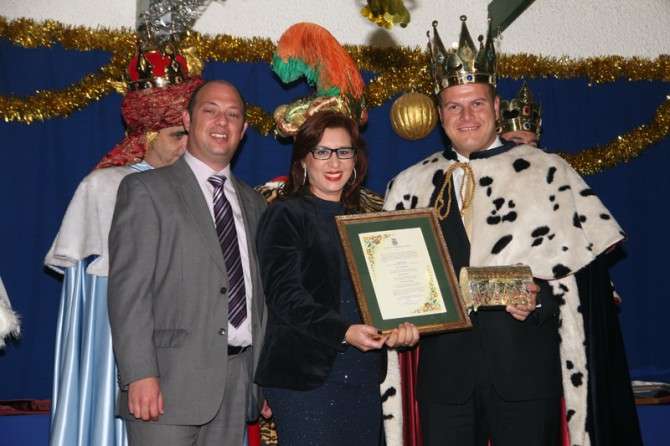 Entre intervención e intervención, fue la alcaldesa de Rota, Eva Corrales, la que entregaba el escudo institucional o la insignia con la Estrella de Oriente a cada uno de los protagonistas de la cabalgata que recibieron además, de manos de la delegada de Comunicación, el pergamino con sus respectivos nombramientos.
