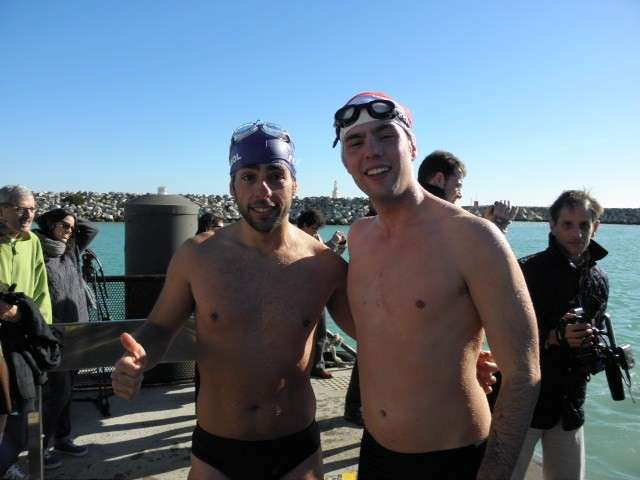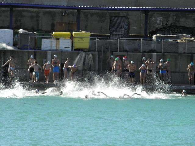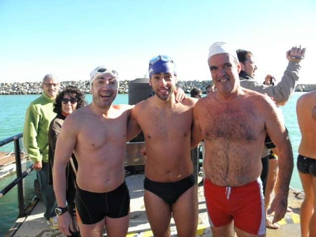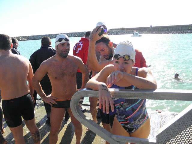 Pasadas las doce del mediodía, era Pedro Machuca el primero que se lanzaba al agua y como es tradición, el último que ha salido de ella. En un intervalo de apenas 5 minutos, han ido llegando el resto de participantes con mucho frío, comentando las sensaciones y recibiendo la enhorabuena de los que mucho más abrigado estaban viendo la travesía desde la barrera, en su mayoría familiares, amigos y aficionados.