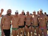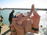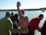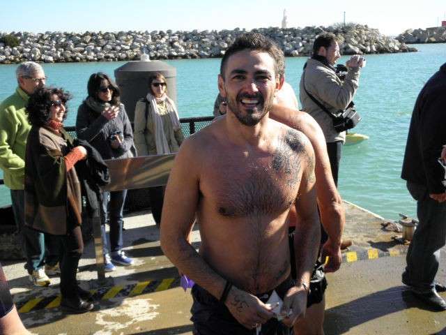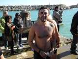 Con unos 13 grados aproximadamente de temperatura en el mar, y algo de viento norte, los nadadores han superado la prueba sin que nadie se haya quedado por detrás, de hecho, alguno se ha regodeado estirando el baño de invierno. Es curioso como algunos ya estaban en el agua y otros, aún se estaban pensando lanzarse de cabeza. Al final, todos han experimentado en sus cuerpos el frío del agua ya que para esta prueba está prohibido el traje de neopreno.