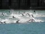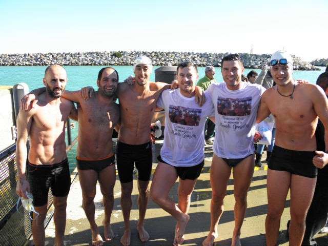 Medio centenar de valientes nadadores desafían el frío participando en la travesía "Pedro Machuca"