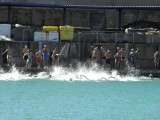 En esta travesía de unos 150 metros aproximadamente, la distancia que hay entre una parte y otra de la bocana del muelle pesquero, lo importante no es llegar el primero sino pasar un buen rato de convivencia y echarle mucho valor al asunto.