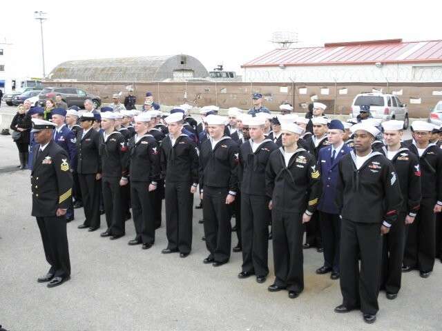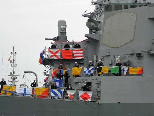 Muy despacio ha entrado el buque en puerto, adornado para la ocasión con múltiples banderas y con la tripulación en cubierta ante la atenta mirada de compañeros de la Marina Americana y Española que lo esperan desde que el pasado 31 de enero partiera con rumbo a la Base Naval de Rota desde Norfolk (Virginia). En esta ocasión, y puesto que las familias de estos tripulantes se prevé que lleguen en el mes de junio, no se ha producido la típica estampa masiva de reencuentro entre familias, tan sólo una decena de ellas han protagonizado este momento que ha sido captado por los numerosos medios de comunicación que estaban acreditados para este evento.