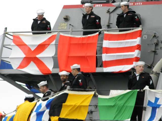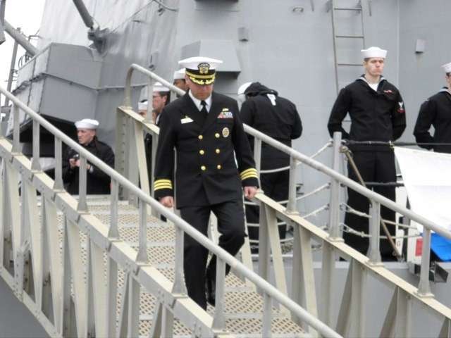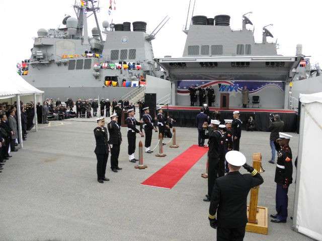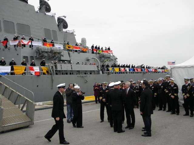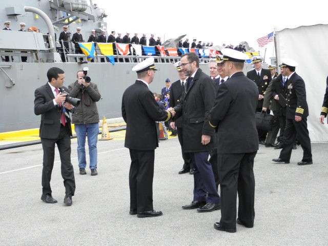 El acto de recepción oficial se ha desarrollado según lo previsto ante la presencia de autoridades militares y civiles encabezados por el embajador de EEUU en España, James Costos, el almirante de la Base, Cristóbal González-Aller, el almirante de la Flota, Santiago Bolívar Piñeiro, el jefe del mando de las Fuerzas Navales de EEUU en Europa y África, Bruce W. Glingan, el secretario de la Armada de EEUU, Ray Mabus y el almirante jefe del Estado Mayor de la Armada, Jaime Muñoz-Delgado y Díaz del Río, entre otros a los que se han sumado la alcaldesa de Rota, Eva Corrales o el presidente de la Diputación provincial de Cádiz, José Loaiza.