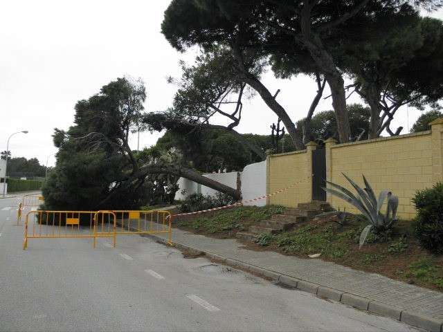 Un árbol cae a la vía pública desde una propiedad privada en la zona de la Almadraba