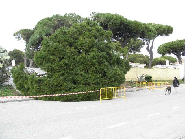 Un nuevo árbol ha caído a la vía pública a lo largo de esta mañana. En esta ocasión, el ejemplar, de considerables dimensiones, se encuentra en el interior de una vivienda particular situada en la calle Prícipes de Asturias, frente a la urbanización del Jardín de la Almadraba, y al troncharse ha ocupado parte de la acera y la calzada.