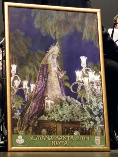 Acto seguido, se procedió por parte del presidente del Consejo Local de Hermandades y Cofradías, Gregorio Sánchez Alonso, y del alcalde accidental Óscar Curtido, al descubrimiento del cartel que anuncia esta Semana Mayor 2014. Una imagen de la virgen Nuestra Señora de la Esperanza del Calvario realizada por Francisco Javier Laynez González, ganadora del XXVI Concurso de Fotografías de la Semana Santa de Rota. La instantánea, premiada con 500 euros, diploma y convertida en el cartel oficial de Semana Santa, fue descubriéndose ante el público al son de la marcha "Calvario" que interpretaba la banda de música "Maestro Enrique Galán".