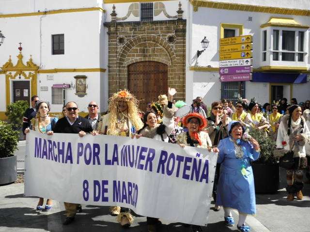 Con una pancarta de cabecera en la que se leía "Marcha por la mujer roteña", integrantes de las diferentes agrupaciones locales de mujeres, algunas disfrazadas y otras no, así como miembros de la Corporación municipal, han recorrido las principales calles de la zona centro. Ha sido un pasacalles rápido, que ha ambientado zonas como plaza de España, calle Charco, San Roque y la plaza de La Cantera donde se ha disuelto en torno a la media hora que ha durado el recorrido. Una vez allí, las agrupaciones han desplegado su repertorio reuniendo a su alrededor a muchos vecinos y turistas que se han reído con sus letras.