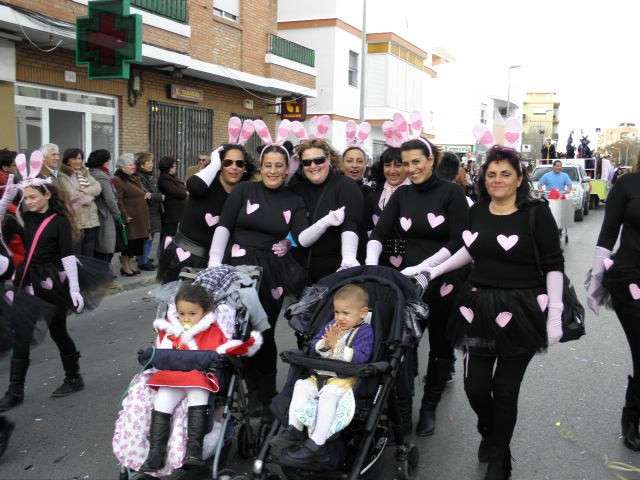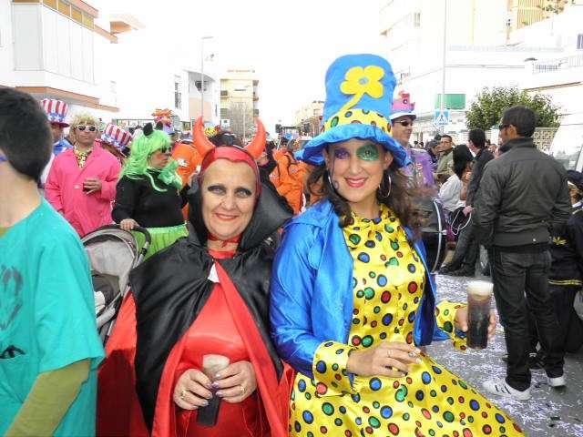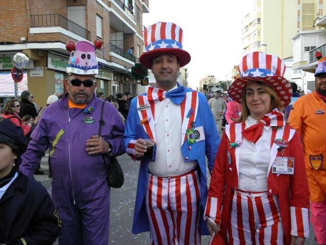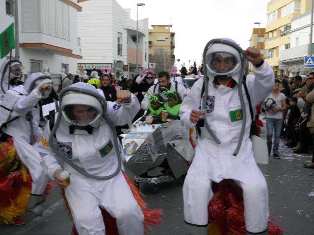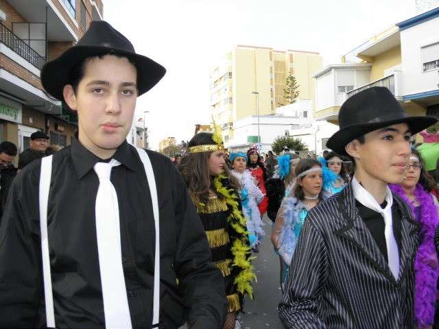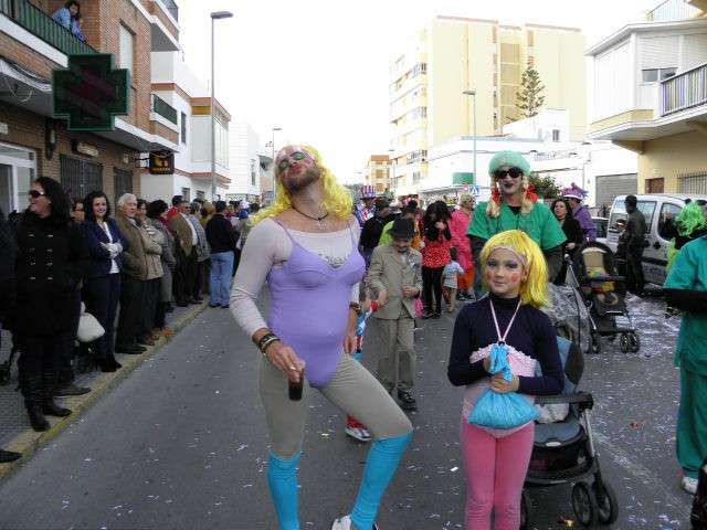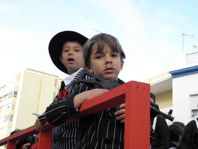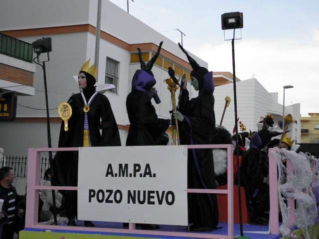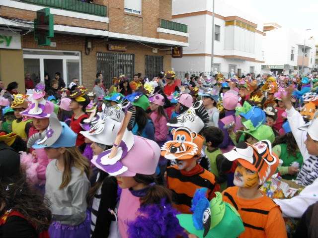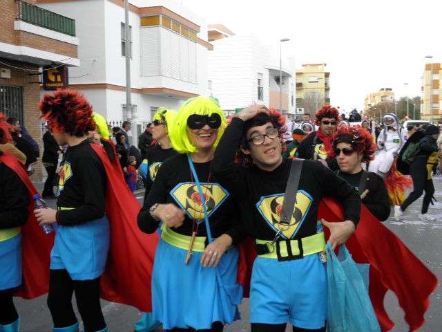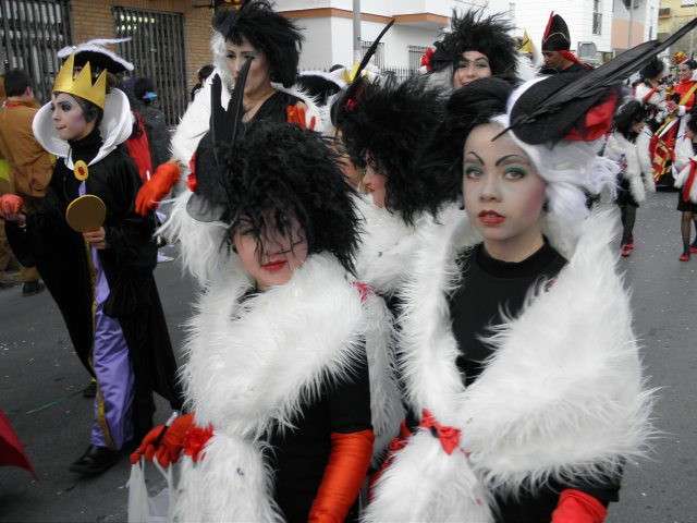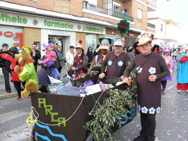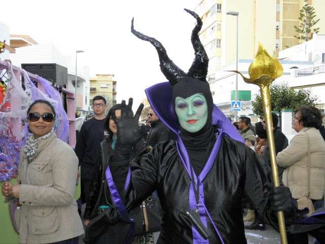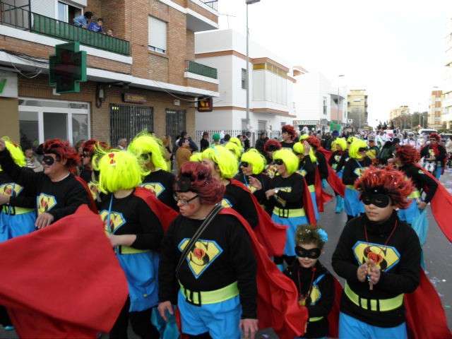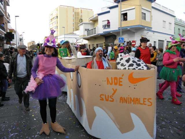 Los vikingos, gánters y cabareteras, animales de un gran arca de Noé, personajes de cuentos como Alicia en el país de las maravillas, madrastras, piratas, superhéroes, hadas y dragones, y un largo etcétera han desfilado encarnados por los colegios Pedro Antonio de Alarcón, Nuestra Señora del Rosario, Maestro Eduardo Lobillo, Pozo Nuevo, Nuestra Señora del Perpetuo Socorro, Luiz Ponce, Azorín, San José de Calasanz, así como la Asociación de Discapacitados, la peña carnavalesca "La Media Luna" y el pregonero de este Carnaval 2014, Enma Ortiz, que se ha sumado con una buena trupe de exploradores y pequeños animales de la selva. A todos ellos, había que añadirles representantes de agrupaciones como "Los aburríos de Janeiro", "Las damas del Rosario", "Los curanderos", algunas "Aeroniñas internacionales", y otros tantos de "Los del Almirante" y rocieras. El largo cortejo, que tardaba casi 45 minutos en pasar por delante de los muchos ciudadanos que hoy han salido a la calle, se completaba con originales disfraces de grupo y parejas que han hecho reír al público que desde el otro lado de la barrera, también despedía este Carnaval 2014.