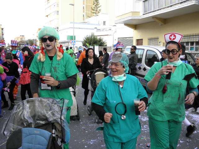 Con todo en orden, la Gran Cabalgata del Humor partía desde la explanada de Renfe pasadas las cinco de la tarde, muy ambientada y sobre todo, con mucha participación. Un año más, los colegios han tomado el protagonismo en este desfile con disfraces muy elaborados y vistosos, lo que ha ayudado a que la estampa que se ha ido dejando por las principales calles y avenidas haya rebosado de colorido. Las trabajadas coreografías y la gran cantidad de padres, madres y menores que han salido a la calle ha hecho que Rota pueda despedir su Carnaval por todo lo alto. A todos ellos se han sumado por supuesto, algunas agrupaciones carnavalescas que desde hace semanas han sido las encargadas de dar vida a esta fiesta de Don Carnal. Menos han sido los grupos de amigos o parejas de ciudadanos que por cuenta propia, también han lucido tipo, aunque hay que reconocer que si han sido menos, algunos eran bastante originales.