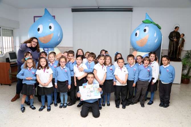 El concejal, junto con el jefe de servicio de Aqualia, Antonio Gragera, han entregado hoy en sus correspondientes centros educativos, los premios al ganador y al finalista de este concurso en el que han participado 2.014 niños y niñas de tercer y cuarto curso de Primaria de la localidad.