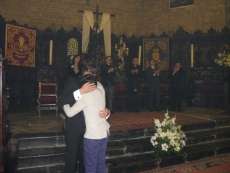 En la recta final del pregón, el pregonero no olvidó la resurrección, su muestra pública de fe y la ilusión porque nada cambie. Los últimos minutos de su presencia en el atril vinieron acompañados de puro sentimiento, el que expresaron sus dos hijos de forma espontánea. Como empezaba su pregón, José Manuel lo terminó. Ahora era él el que se veía como aquel anciano mirando una estampa de su Cristo dirigiéndose a sus hijos diciéndole que "Rota se parará cada Madrugá". Palabras que emocionaron de maner notoria a su hijo mayor que rompió el lágrimas abrazado a su padre, la estampa viva del semillero cofrade que tiene la villa.