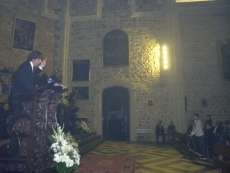 [Img #31579]Su demostración de fe pública a través de las líneas escritas en estos meses atrás dejaron clara su condición cofrade. El pregonero no mantuvo como hilo conductor la salida cronológica de las hermandades para realizar la estación de penitencia, -algo que suele ser habitual-,  prefirió referirse a cada una de ellas de modo aleatorio ensalzando las virtudes de quienes la componen y la hacen mantenerse en el tiempo: la joven Hermandad del Amor, la sobria Hermandad de la Salud, el esfuerzo de la Veracruz, la protagonista en la tarde Jueves Santo con los Dolores, la austeridad y disciplina del Cristo yacente, el llanto de la Soledad, la cara de las Angustias y para el final, su Hermandad del Nazareno. A partir de sus palabras de devoción al Señor de Rota, el pregonero cambió de tercio transmitiendo a los presentes sus propios sentimientos. Las líneas dedicadas a la liturgia de vestirse de nazareno, los nervios previos a la salida procesional, el recuerdo de los que ya no están y la alegría de compartir con los  suyos cada Semana Santa, igual pero diferente, emocionó a sus hermanos que no pudieron contener las lágrimas.