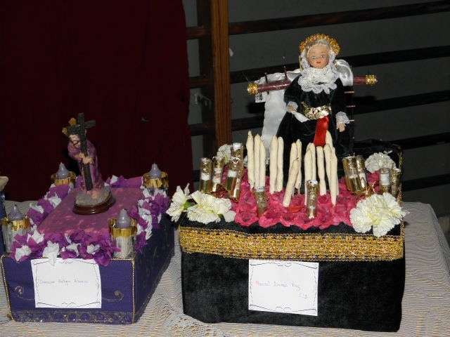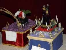 Los dos pasos que mañana saldrán a la calle están desde el pasado martes en el salón del colegio Luis Ponce donde se exponen algunos de los pasos miniaturas que alumnos del centro han elaborado junto a sus padres y familiares con motivo de la Semana Santa. Más de una quincena de pequeñas réplicas de vírgenes, cristos y crucificados componen esta muestra donde se puede observar la habilidad de alumnos y padres para las manualidades, de hecho, algunos han conseguido ser bastante realistas. Es una actividad dentro de la asgnatura de Religión que ayuda a los más pequeños a trabajar directamente la celebración de la Semana Santa.