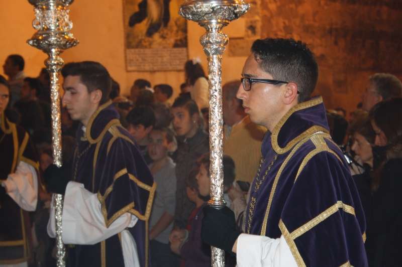 La noche acompañó a Jesús Cautivo en su salida procesional que el año pasado se vio interrumpida por la lluvia. En esta ocasión, parece que el tiempo está dando una tregua a los cofrades y hasta ahora, todas las estaciones de penitencia se están desarrollando sin ningún problema. A la Hermandad de la Veracruz aún le queda una tercera salida a la calle, será el Viernes Santo con el Cristo de la Veracruz y María Santísima de las Angustias.