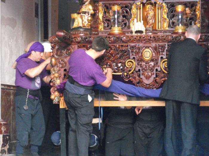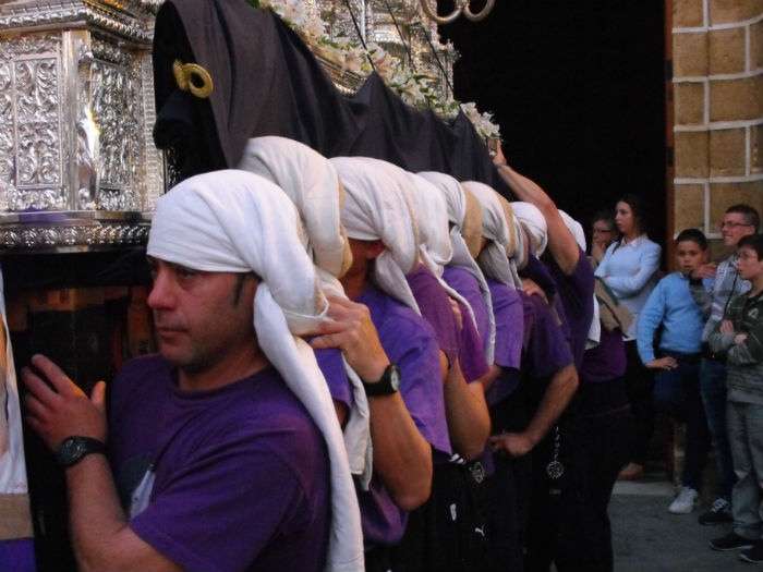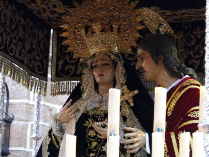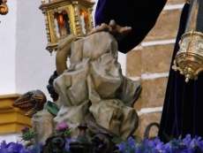 Jesús de la Salud y María Santísima de la Caridad volvieron a capilla algo antes de la una y media de la madrugada tras recorrer las principales calles del casco antiguo. Lo hicieron en un ambiente de oscuridad total, con las calles Charcos y plaza de Andalucía sin luz, lo que dio muestra una vez más de la jornada de luto que siempre siembra esta hermandad en la Semana Mayor de la villa.