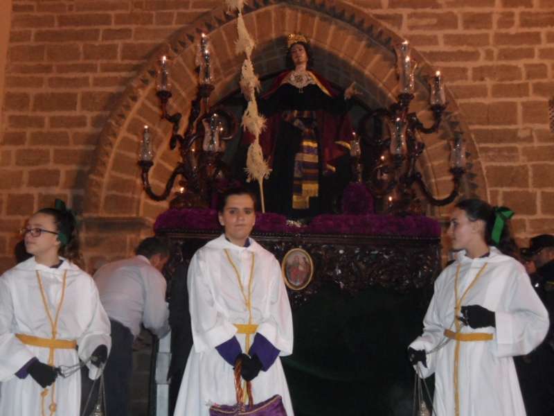 Hacía ya algunos años que Rota no vivía una Madrugá tan espléndida como esta donde prácticamente todos los condicionantes han estado de su lado. El principal, el tiempo, que ha sido el que durante los últimos cuatro años ha deslucido sobremanera la estación de penitencia dejándola a veces a medias y otras sin posibilidad siquiera de iniciarla. Pero ayer fue diferente. Tras una buena tarde de Jueves Santo, los cofrades se quedaron en la calle para ver salir a Jesús Nazareno portando la cruz ayudado por Cirineo, a su madre, la virgen de la Amargura, y su apostol San Juan Evangelista. Tres titulares que partían desde la parroquia de Nuestra Señora de la O a las dos de la madrugada acompañados por hermanos penitentes portando cirios, cruces y las insignias destacadas de la cofradía. Aunque la puerta de la parroquia se abrió puntual para dejar pasar la cruz de guía que abría el cortejo, no fue hasta las tres y media de la madrugada cuando la hermandad estuvo al completo en la calle. Hora y media para una salida procesional en la que el paso de cristo, el de la virgen y el del apostol se lucieron al mando de los capataces Diego Mateos Laynez, que dirigió también el Lunes Santo al Cristo del Amor por primera vez; José Izquierdo Alcedo que se estrenaba en el cargo frente a la cuadrilla joven de la hermandad con el San Juan; y Manuel García, que también debutaba al frente de la Amargura. Con ellos han venido algunas novedades como que este año, Jesús Nazareno contara con dos cuadrillas de cargadores en vez de una para dar así la oportunidad de que más roteños puedan cargar al Señor de Rota sobre sus hombros, y que el San Juan haya sido cargado de costal. Pequeños cambios que se han sumado a esta Madrugá distinta quizás en algunos detalles pero la misma de siempre en esencia.