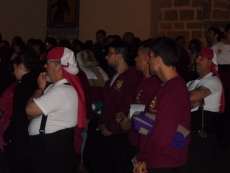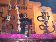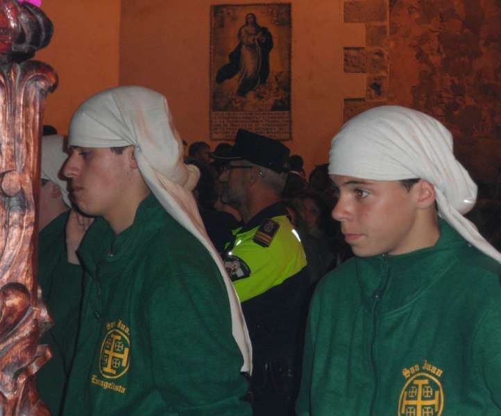 El párroco Carlos Redondo suele ser muy directo y hablar de cosas cotidianas asociándolas al sentimiento de la fe, y en esta ocasión ha aprovechado una presencia tan concurrida para hablar de la virgen de la Amargura a la que ha comparado con el papel de las madres que sufren por sus hijos y la cruz que cada uno lleva (drogas, paro, futuro inestable...); ha destacado la presencia del San Juan, el apóstol más joven e inexperto de Jesús y sin embargo, el único que no lo abandonó, como la imagen de los jóvenes a los que el párroco ha pedido que no tengan miedo al futuro ni vergüenza por mostrar su fe. Y por último, sus palabras se dirigían al Nazareno, el que carga con su cruz en solitario pero no sólo ya que está acompañado, com oha dicho el cura, por los muchos cofrades y cristianos que lo siguen. Él hace un llamamiento diario a aquellos que quieran sumarse a su fe, el mismo, que esta mañana ante una plaza pública ha lanzado este Carlos Redonde en su sermón de pasión.