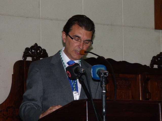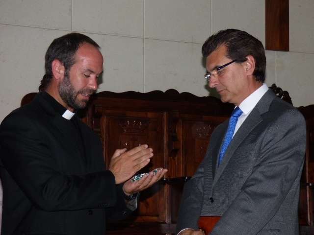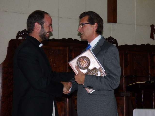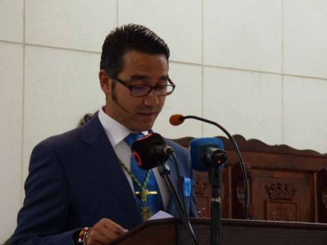 El pregonero se subía al atril del altar de la parroquia de Nuestra Señora del Carmen recibiendo antes la medalla de la Hermandad de Nuestra Señora del Rocío de manos del reverendo padre, Carlos Redondo. Estuvo presentado por la rociera María García Polo que mostró su orgullo y el honor que le suponía dar a conocer el currículo de un hombre de fe mariana, entregado a la devoción de la virgen el Rocío y con una reconocida trayectoria tanto laboral -dedicándose al mundo de la comunicación- como dentro de diferentes hermandades. María Polo reiteró su satisfacción por poder presentar a un pregonero que es ducho en esta materia ya que desde 1988 han sido muchos los pregones que ha protagonizado tanto del Rocío, de Semana Santa, ferias, del Rosario, etc. Es un ambiente en el que se desenvuelve bien y ayer, en una iglesia del Carmen quizás algo desagelada, con menos de un centenar de personas entre el público, dio muestras de su buen hacer.