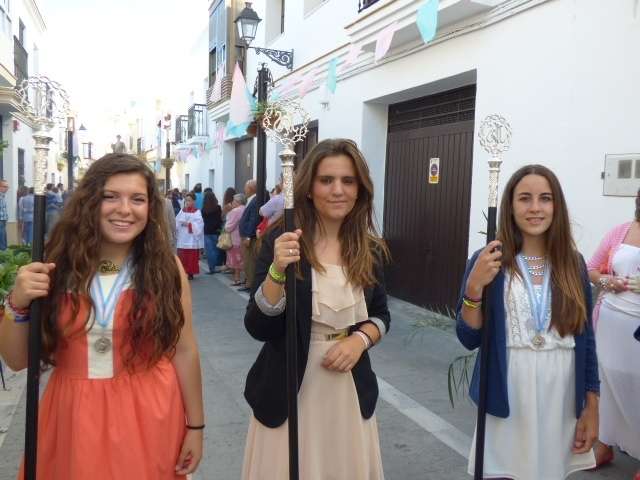 Uno de los momentos más lucidos es su paso por la calle Prim no sólo por la estrechez de esta vía sino porque ayer se mostraba decorada para la ocasión con los tradicionales colores rosa y celeste con el que se asocia a María Auxiliadora. La virgen recibió a lo largo de su paso varias lluvias de pétalos que mostraron una vez más la devoción y seguimiento de los roteños a María en un 24 de  mayo que volvió a brillar acompañado de buen tiempo y sobre todo, muchos ciudadanos en las calles.