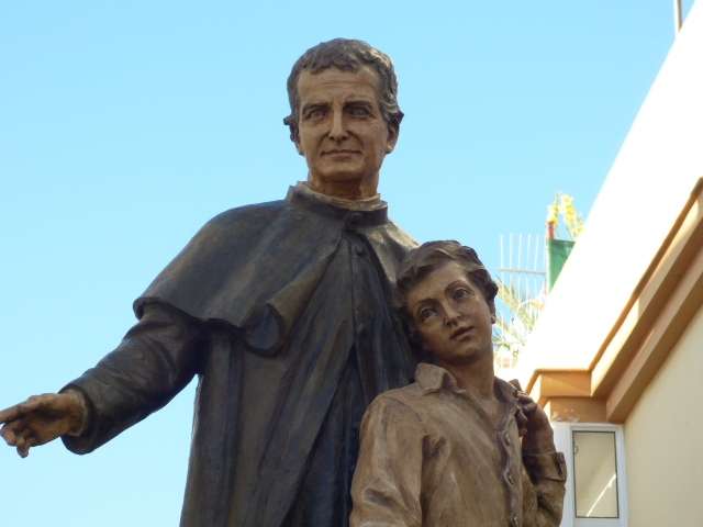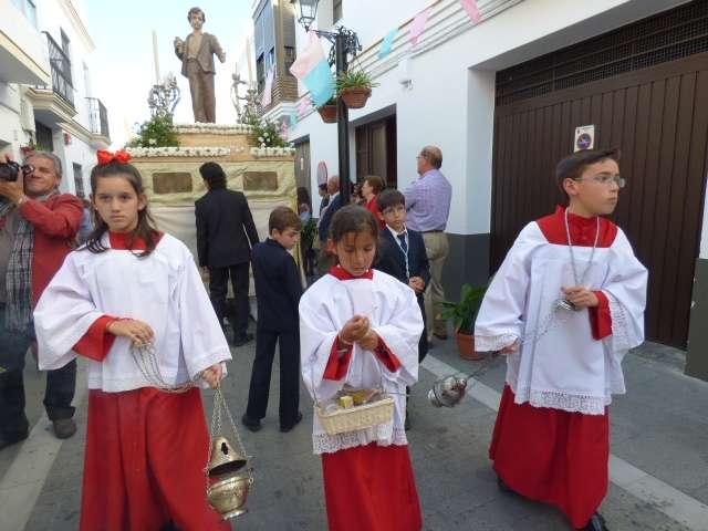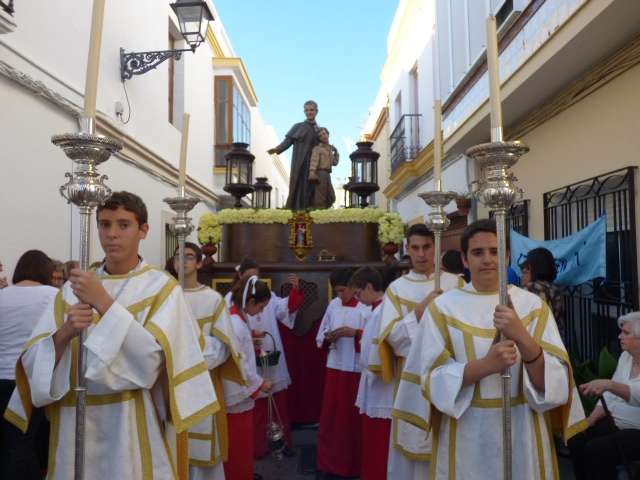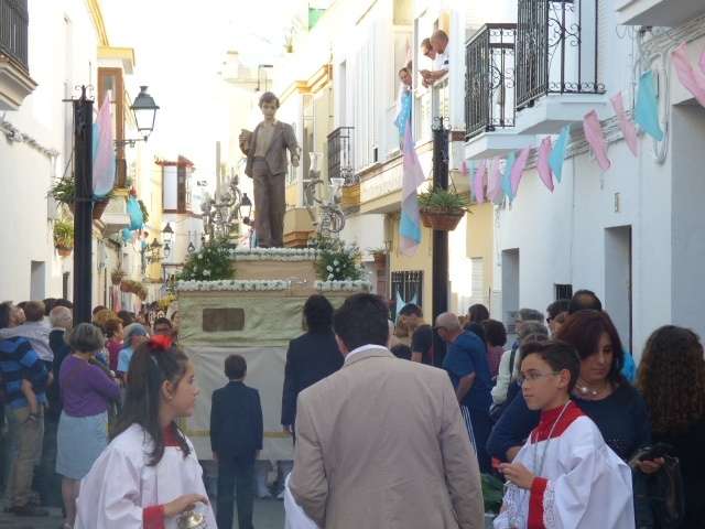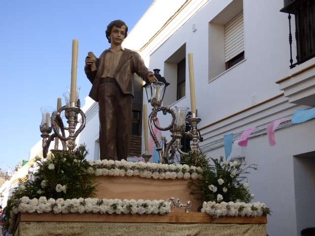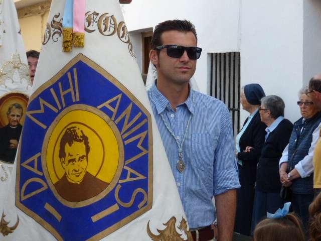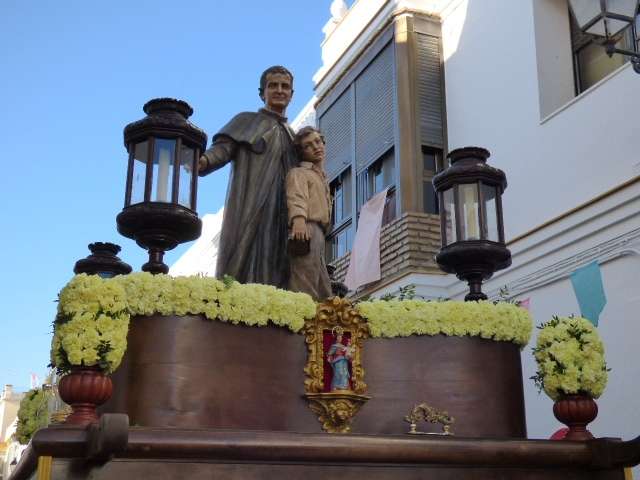 Santo Domingo Savio era portado por una cuadrilla de doce jovencísimos costaleros, alumnos del centro, a los que seguían otros tantos jóvenes  que hacían los propio con San Juan Bosco que el año pasado ya presentó mejoras notables en su paso.