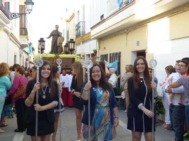 Durante esas más de tres horas, un amplio cortejo recorría con ella las principales calles compuesto por representantes del grupo scouts "Santo Domingo Savio", alumnos salesianos portando varas e insignias, monaguillos, cuerpo de acólitos, miembros de asociaciones parroquiales, movimientos salesianos, mujeres de mantilla, la banda de música Ruiz-Mateos, niños vestidos con su traje de Primera Comunión, revoltosos angelitos y los seises que junto a la presidencia precedían a la imagen de María Auxiliadora acompañada por la banda de Nuestra Señora de Palomares de Trebujena. No fue el único paso del cortejo porque con ella procesionaban dos de las figuras más importantes para la Casa Salesiana, San Juan Bosco y Santo Domingo Savio. El joven santo que murió apenas con 15 años y que fue el mejor alumno del educador salesiano San Juan Bosco han ido completando con el paso de los años una procesión que últimamente se caracteriza por su amplísima participación donde se puede ver a alumnos muy jóvenes  y adultos comprometidos con la eduación religiosa.