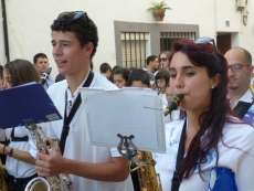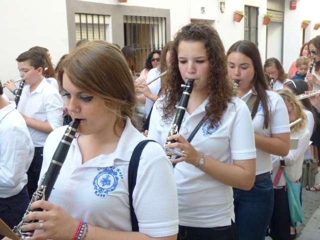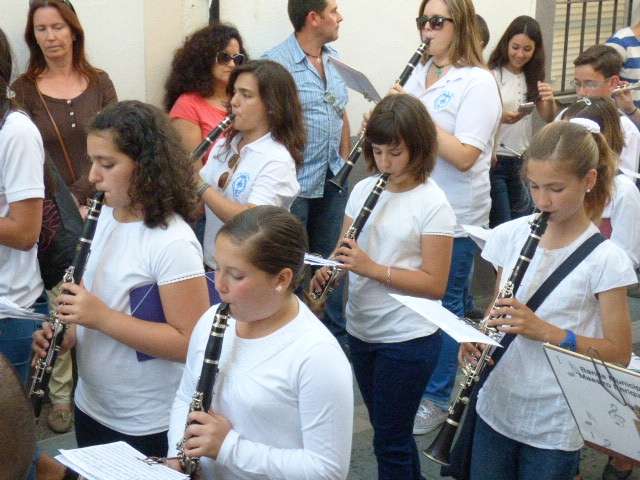 En el camino estuvieron acompañados por la banda de cornetas y tambores de la Asociación Musical Ruiz-Mateos, que abría el cortejo junto a la Cruz de Mayo, y por la banda municipal "Maestro Enrique Galán" que en esta ocasión salía a la calle con los alumnos de su escuela que por primera vez tocaban en público. Jóvenes promesas de la música a los que la Asociación de la Cruz de Mayo del Casco Antiguo quiso agradecer su colaboración y felicitar por el buen hacer demostrado en la calle. No fue a los únicos a los que se agradeció su colaboración con esta cita anual. También se agradeció a la Hermandad del Nazareno que preste su casa para partir desde allí y permitir el arreglo de los pasos los días previos, y a la Hermandad de la Veracruz, que ceda la capilla de San Roque para la misa previa que antes de la salida se ofrece a los pequeños. Este año, sorprendentemente y por primera vez, no se ha podido celebrar esa eucaristía por falta de cura disponible, según informó la organización a este medio, lamentando mucho que no hubiera un sacerdote dispuesto a este cometido. En su defecto, los miembros de la asociación ofrecieron una misa a los chavales para que entendieran el significado de esta cruz de mayo y salvar así este incidente.