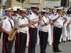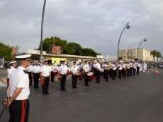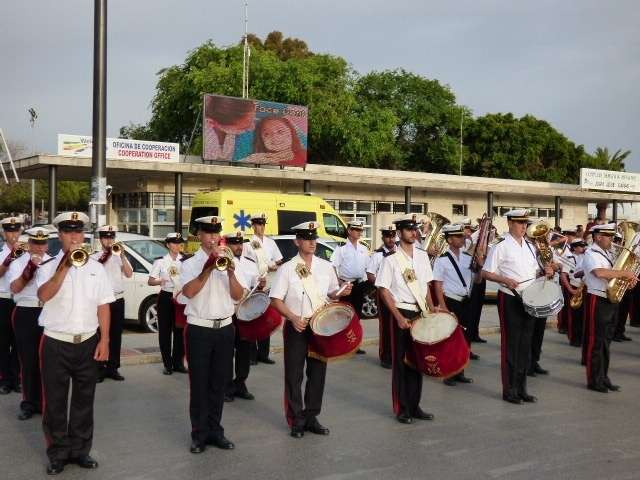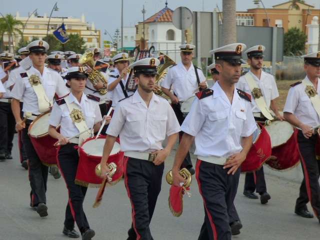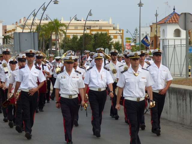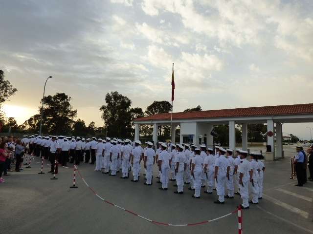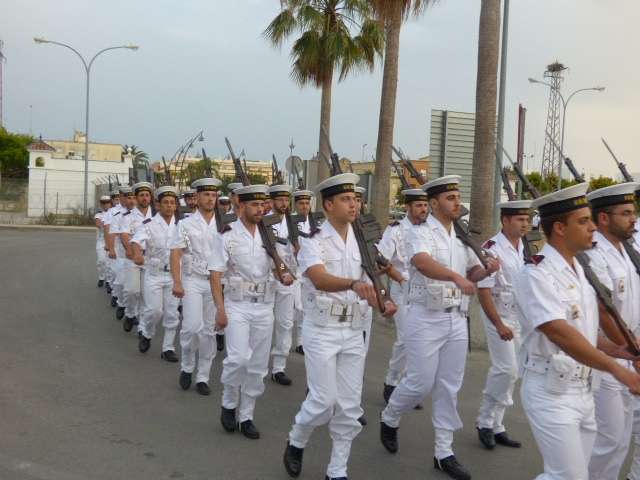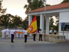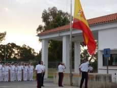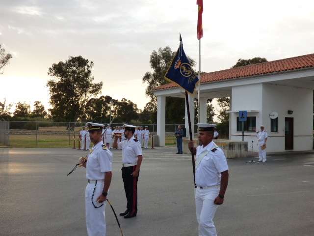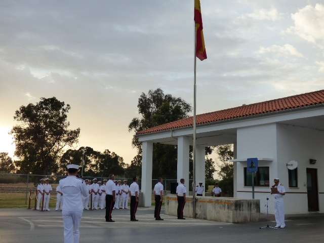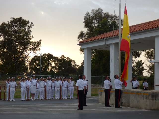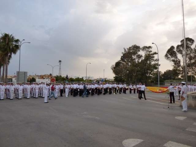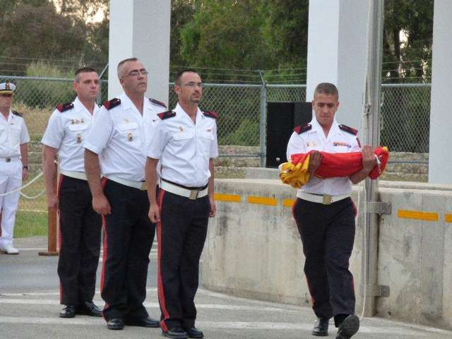 Fue a las nueve de la noche en punto, coincidiendo con el ocaso, cuando la banda de música del Tercio Sur de San Fernando iniciaba el acto con la formación de las secciones de honores de marinería y de la Base Naval que desfilaron desde unos metros antes de la entrada a la Base hasta el control donde está situado el mástil con la bandera nacional. Al son de los acordes del himno de España, se procedió al arriado solemne de esta insignia.