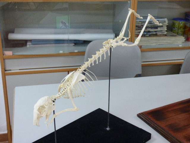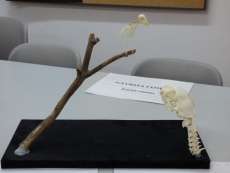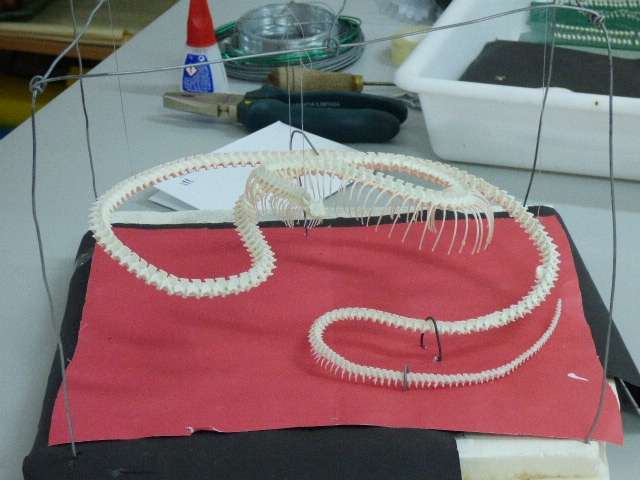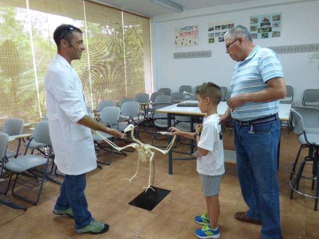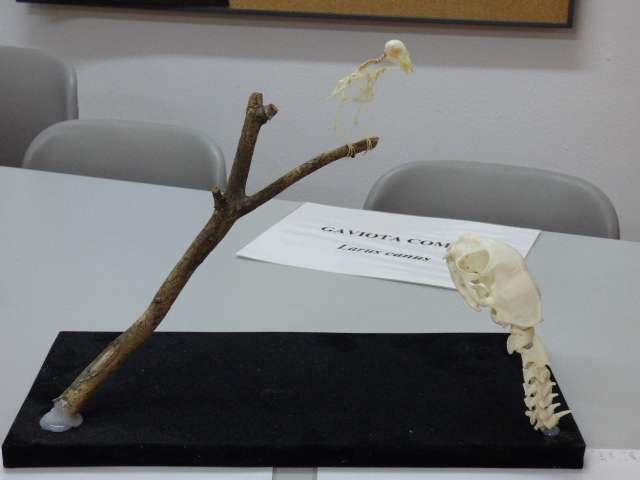 Esqueletos de una gaviota, de un gato doméstico, de un mirlo, de un alcón peregrino, de un perro doméstico, un buitre leonado, un camaleón, un conejo, una liebre, un azor o una culebra de escalera han pasado por las manos de Jesús y Héctor que se han encargado de todo el proceso, es decir, desde que le llega el animal muerto, el descarnado, el limpiado total de huesos, su posterior clasificación y la parte más entretenida, el montaje final para obtener resultados como los que se veían ayer.