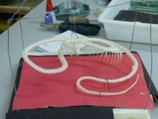 Sin duda, la pregunta más repetida a lo largo de toda la jornada en la que mostraron sus trabajos fue si esos huesos y esqueletos articulados eran de verdad porque parece increíble que haya tanta paciencia en alguien que pueda por ejemplo sentarse a montar una por una, las 265 vertebras de una culebra. Para los dos miembros de Osteología del Sur, no sólo es posible sino que les apasiona enfrascarse en este tipo de montajes tal y como ayer mostraron a Rotaaldia.com.