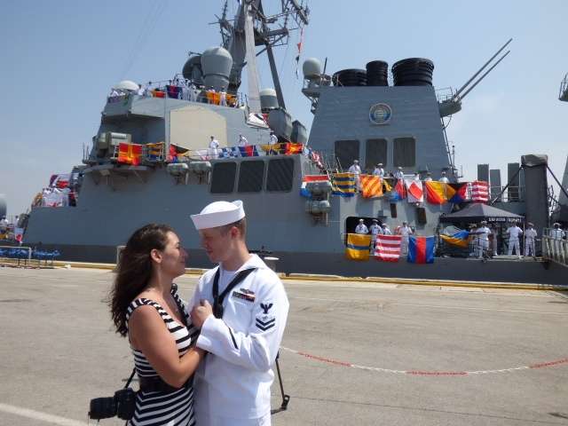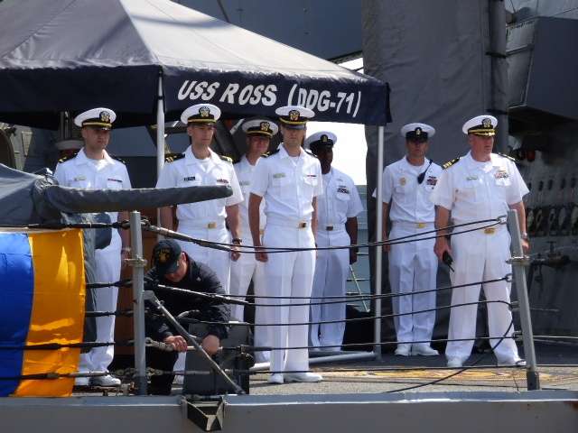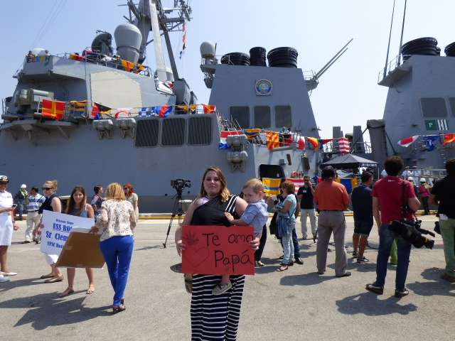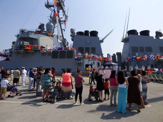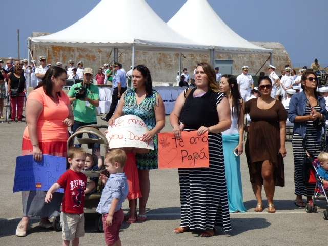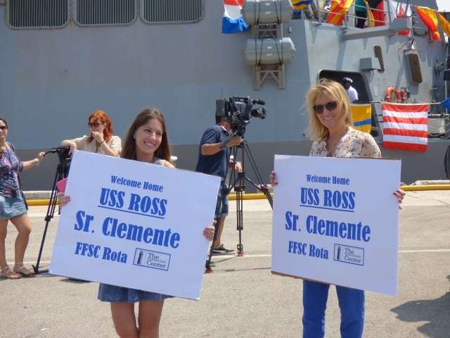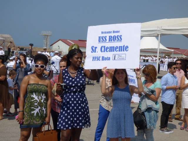 Puntual a las 12.00 horas entraba en puerto el "USS Ross" engalanado con múltiples banderas y con la tripulación en cubierta formada mientras al otro lado del muelle, esperaban algunos familiares de los tripulantes con carteles de bienvenida. Es un día para la historia ya que desde los años 80 no hay en la Base Naval presencia militar permanente que ahora sí será posible con estos dos barcos y los dos restantes que llegarán en la primera mitad de 2015, según ha avanzado el comandante de la Sexta Flota.