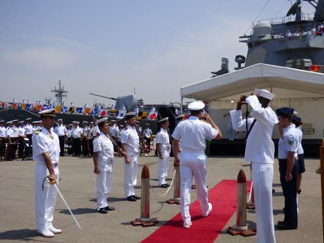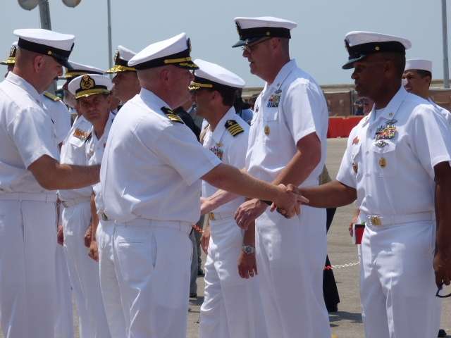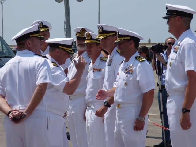 Con todas las autoridades militares presentes, entre los que estaban el almirante de la Base, Cristóbal González Aller, el almirante de la Flota, Santiago Bolíbar, el comandante de la Sexta Flota, Philip Davidson, y el comandante de las Actividades Navales de EEUU en España, Greg S. Pekari, se han iniciado las intervenciones. Los cuatro han coincidido en resaltar las buenas relaciones que España y EEUU mantienen en defensa del Mediterráneo ante posibles ataques misiles, y han puesto a Rota y El Puerto, con sus alcaldes a la cabeza, Eva Corrales y Alfonso Candón presentes en el acto, como muestra de la buena acogida que siempre dan a la comunidad americana destinada en esta zona.