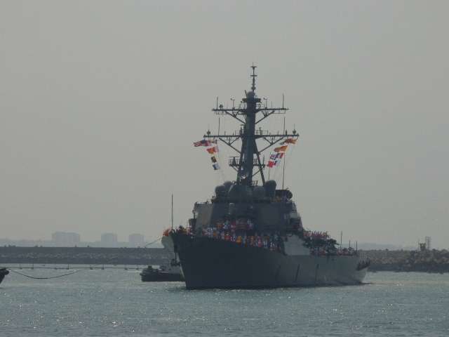 A las doce del mediodía ha llegado al muelle de la Base Naval de Rota el "USS Ross", segundo buque de los cuatro destructores que se desplegarán en el recinto militar roteño a raíz de la implantación del escudo antimisiles de la OTAN.
