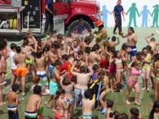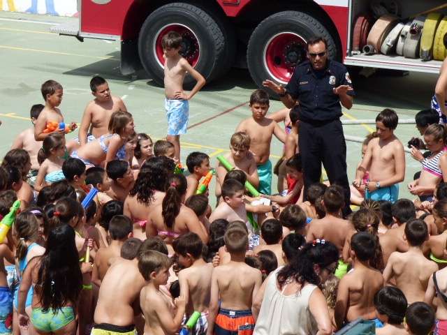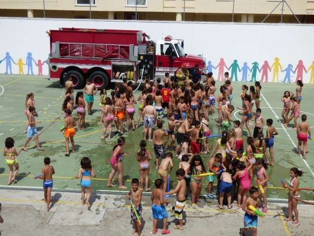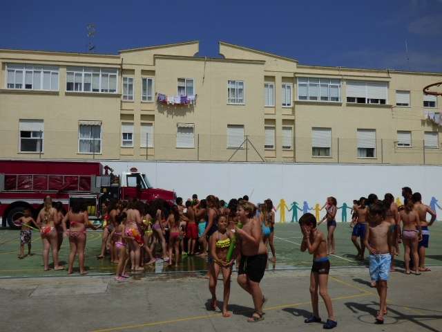 Los alumnos de Azorín disfrutan hoy de su fiesta del agua con la colaboración de los bomberos