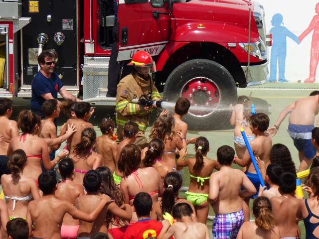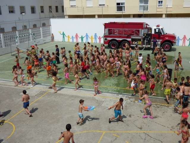 Esta mañana, los alumnos de Azorín han podido disfrutar de este día en el que el agua durante un par de horas es el protagonista absoluto. Gracias a la colaboración del Cuerpo de Bomberos de la Base Naval, que se traslada al colegio  con un camión, los niños se divierten de lo lindo.