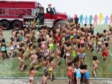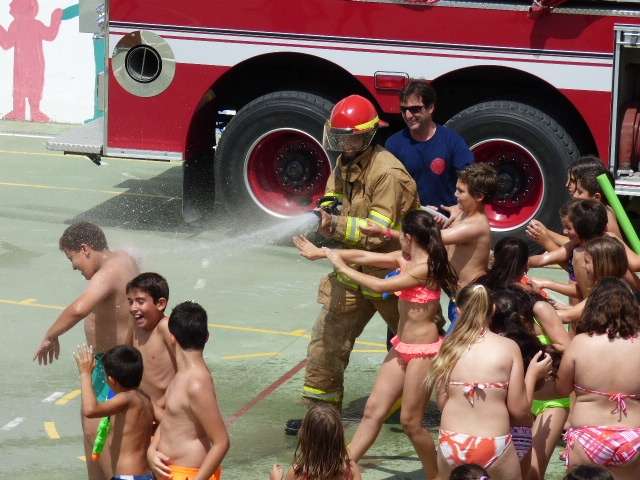 Antes de comenzar a lanzar cañonazos de agua desde el camión bomba, uno de los bomberos presentes ha intentado mantener una charla con los escolares. Ha sido algo complicado porque los alumnos estaban deseando comenzar a jugar con pistolas de agua incluidas, pero finalmente ha conseguido que se le escuchara y ha dado consejo a los menores sobre cómo actuar en caso de un incendio. A todos les ha dicho que lo más importante cuando vean un fuego es salir fuera del lugar en el que se esté produciendo y no intentar apagarlo -dada las edades-, que para este cometido ya acuden ellos. En caso de encontrarse sin opción de salir, les ha aconsejado que se encierren en una habitación y griten por la calle. "Lo importante no es apagar el fuego sino salvar vidas", les ha dicho este bombero a un auditorio demasiado revoltoso.