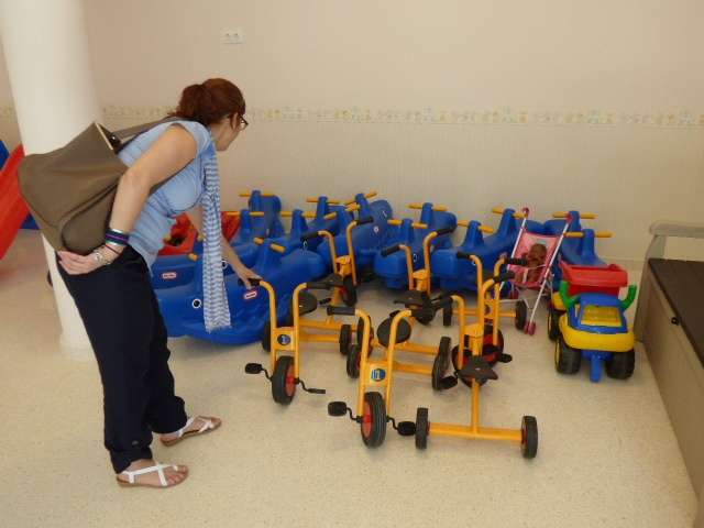 La técnico de Educación ha sido la encargada de contar con todo lujo de detalles qué y para qué está diseñada cada cosa, aula, oficina o salón de esta nueva guardería intentando con ello trasladar a los medios, a petición de la alcaldesa, que estos se lleven una idea completa del nivel de la escuela infantil que se mantiene cerrada pese a llevar más de dos años terminada. El motivo es la negativa de la Junta de Andalucía a la hora de conveniar las plazas que permitirían que los padres con hijos tuvieran que pagar cifras que rondarían los 240 ó 300 euros como ocurre ahora. La apuesta al poner en marcha este proyecto fue por la educación pública y en esas treces se mantiene el gobierno municipal que ha hecho todo lo necesario, según han detallado, para que desde la delegación provincial de Educación se tenga a Rota en cuenta para futuros convenios.