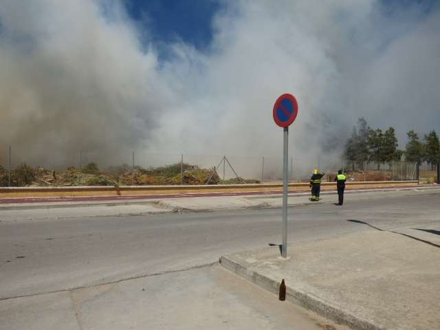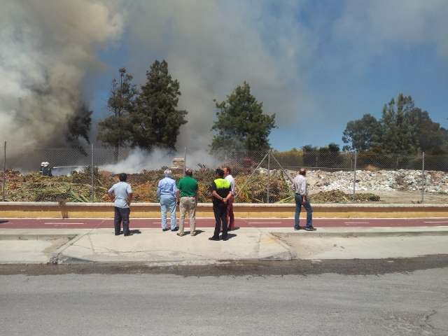 Aunque las llamas están controladas, el leve viento que sopla y sobre todo, que la zona esté llena de restos de poda de árboles, ha hecho que el fuego se haya extendido rápidamente afectando a prácticamente toda la parcela destinada a depositar las ramas y troncos podados.
