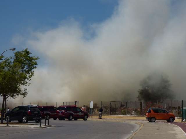 [Img #35320]Sobre las tres y cuarto de la tarde de hoy domingo, 29 de junio, se ha desatado un incendio en el Punto Limpio de Rota. Las causas aún se desconocen por lo que no se descarta ninguna hipótesis inicial entre las que están la de que haya podido ser fortuito, un cigarro o incluso el reflejo del sol sobre algún  vidrio.