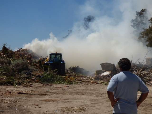 Hola este suceso se podia haber evitado. La semana pasada ví un monton de ramas en el recinto del ayto. donde los empleados publicos depositan las ramas de la poda, y al verlo yo almenos ví el peligro, me dije viene cualquiera echa un cigarro y la lia, llega el calor y puede salir ardiendo. Señores del Ayto. un negativo para uds. Me imagino que la maderea hay q destruirla antes y no almacenarla de esa manera y si se hace fuera del alcance publico y empleando medidas correctoras.