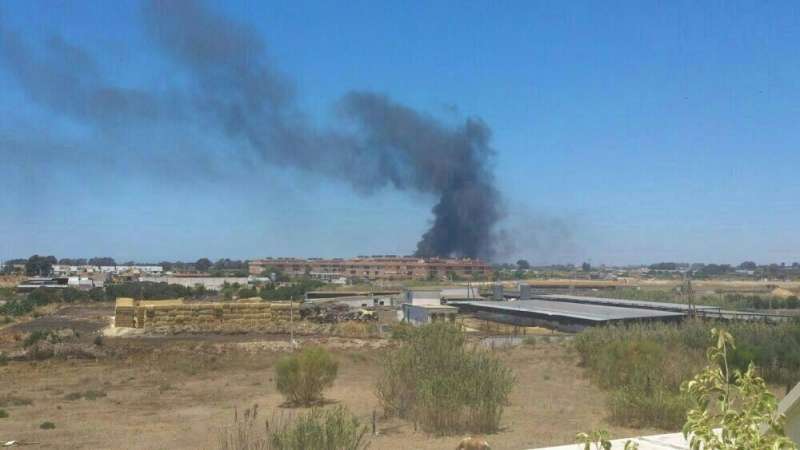 A las dos de la tarde se ha desatado un incendio en una parcela privada cercana a la finca Ave María. Afortunadamente no hay que lamentar daños personales ya que lo que ha ardido han sido pastos, cañas y algunos neumáticos que había amontonados cerca de donde se ha desatado el fuego. Esto último ha hecho que se produjera una gran columna de humo negro que ha alertado a los conductores que pasaban por la carretera periférica de entrada a Rota. La realidad es que la gran humareda se veía desde varios puntos de la localidad debido a la dimensión que había tomado.