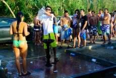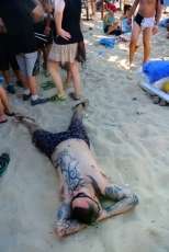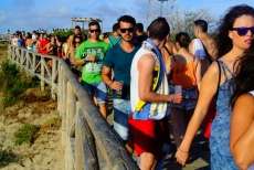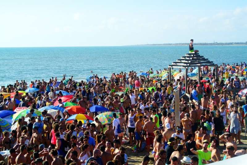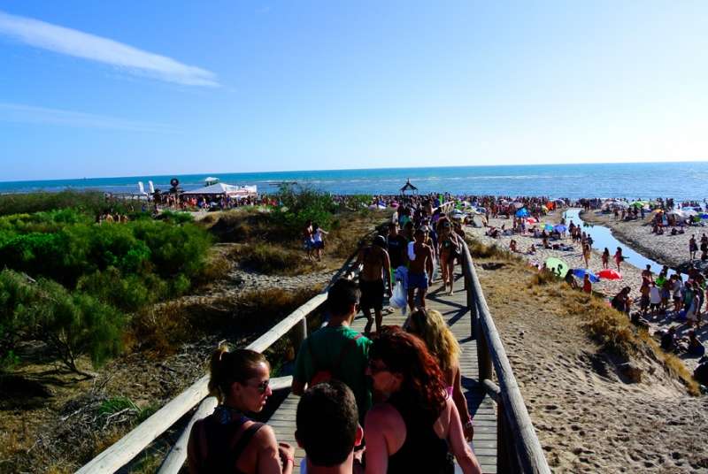 Durante el día, la playa ha sido el punto de encuentro más concurrido con música y ambiente hasta desfallecer, una alternativa perfecta para los que querían disfrutar de un evento festivo sin tener que pagar una entrada. Roteños y turistas, visitantes del Alrumbo y curiosos, se han concentrado en el kilómetro de playa más ambientado de todo el fin de semana. Ayer principalmente, fue una de las jornadas más concurridas hasta donde se acercaron jóvenes de localidades cercanas atraídos por la marea humana que en bikini y bañador pasó largas horas bailando, bebiendo y disfrutando de un día distinto a los que se ofrecen por la zona.