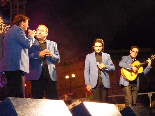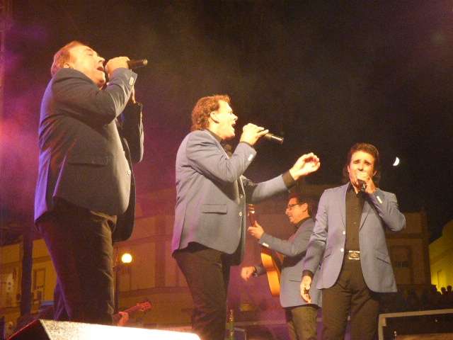 Los Ecos del Rocío no tardaron en aparecer y con ellos, las letras de sus sevillanas en las que la mujer tienen un papel fundamental. Agradecidos por la acogida de su pueblo, y encantados de cantar en su Rota natal, de donde salieron como grupo rociero en la década de los 80, estos cuatro hombres animaron al público durante más de hora y media. El aforo de la avenida San Juan de Puerto Rico se fue llenando y los Ecos del Rocío disfrutaron con una noche en la que se emplearon a fondo.