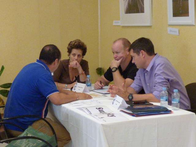 Sectores como el de servicios, la construcción, la industria o el ocio han acudido a esta jornada de trabajo que ha tenido como escenario el salón multiusos del Palacio Municipal Castillo de Luna. Allí, dispuestos en varias mesas, estaban los jefes de departamentos de compras y servicios que operan dentro del recinto militar roteño y por cada una de ellas han ido pasando los empresarios que, divididos en dos grupos, han esperado turno para contar cuál es su producto, dejar tarjetas de información, folletos, y en definitiva, explicar qué pueden ofrecer desde su empresa.