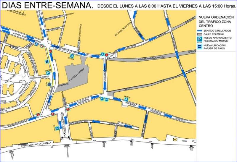 En estos cambios se incluye la zona de aparcamiento habilitada para motos en la plaza Jesús Nazareno mientras que la zona de carga y descarga de esta plaza se ha trasladado a la avenida San Fernando, donde también se encuentra la parada de taxis.