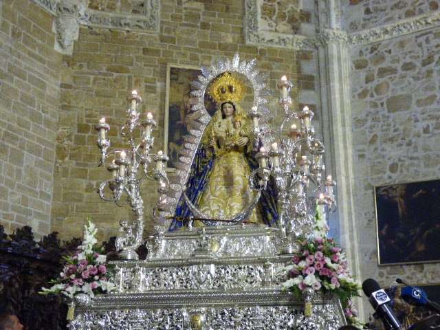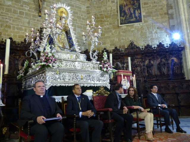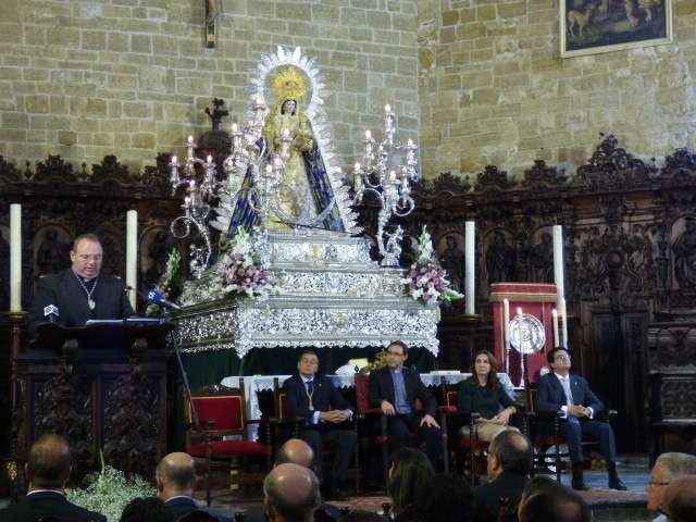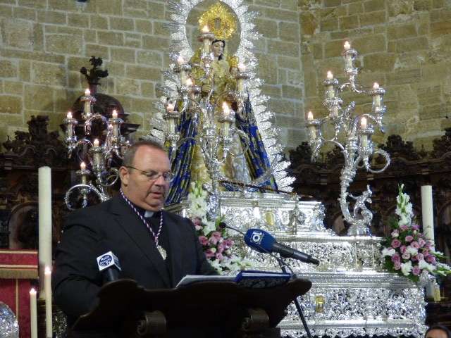 Y es que tras el traslado de la patrona desde su capilla, el acto previsto para la mañana de ayer domingo, pese a que habitualmente esta cita tiene lugar en viernes por la tarde, continuaba con el LXVII Pregón del Rosario donde el pregonero, sacerdote jerezano, ensalzó el amor al Rosario y la tradición que rodea a esta virgen.