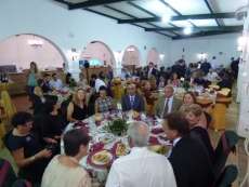 Ya sobre las once menos cuarto de la noche, y con el salón del pabellón municipal repleto de gente, entre los que se encontraban miembros de la Corporación municipal y autoridades civiles y militares, comenzaba a servirse la cena tras la cual se llevó a cabo el acto institucional en el que la alcaldesa de Rota, Eva Corrales, haría entrega a cada una de las 24 damas del Rosario y a la dama mayor de un recuerdo de su nombramiento así como al exaltador de las fiestas.