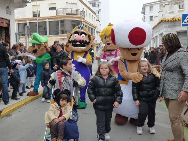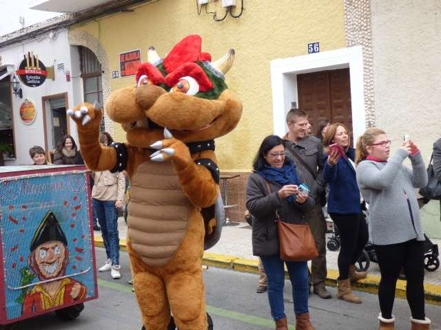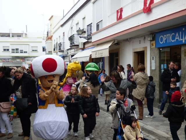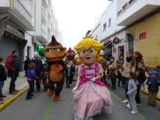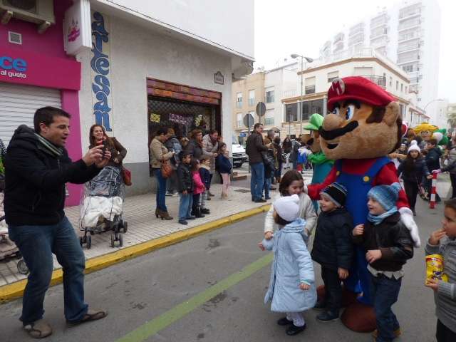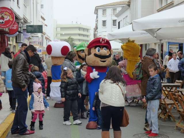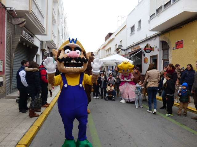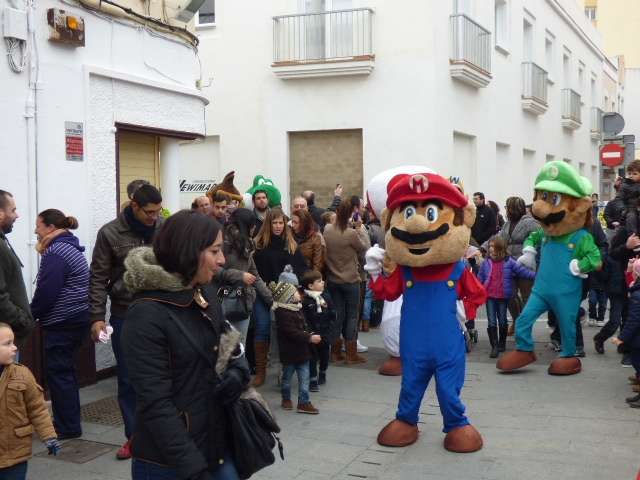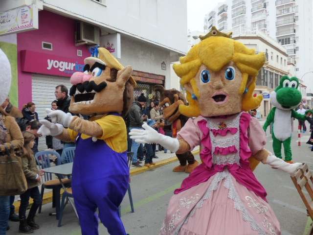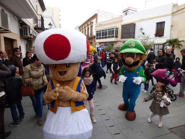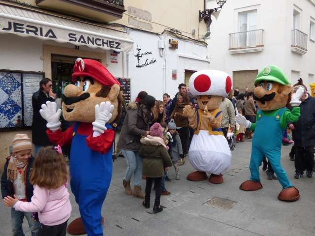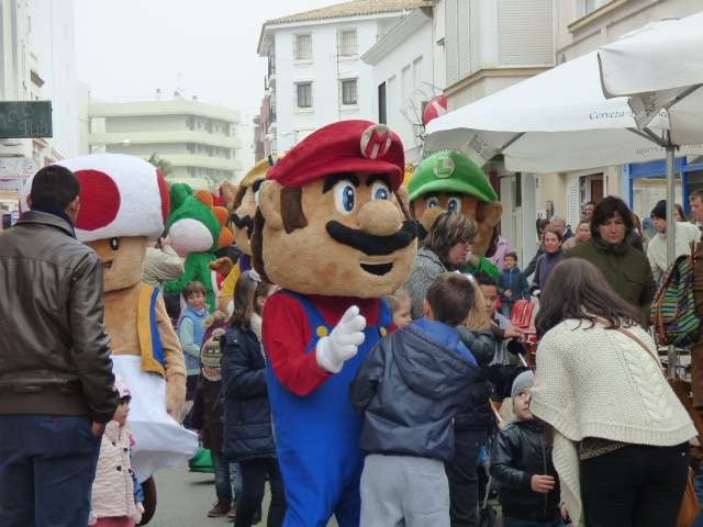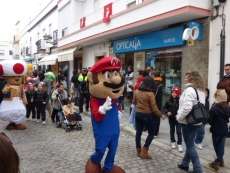 El frío y la niebla espesa con la que ha amanecido esta mañana de sábado no ha sido impedimento para que la zona centro haya estado ambientada durante algo más de una hora gracias a la presencia de los personajes del conocido videojuego Mario Bros que han salido en pasacalles para hacer disfrutar a grandes y pequeños. Desde las doce del mediodía partía el cortejo que, aunque con algo menos de una decena de muñecos, ha estado muy animados gracias a la música que les acompañaba y a las coreografías que los propios personajes han protagonizado. Los más atrevidos se han unido a los bailes e incluso han pedido hacerse fotografías con Mario Bros y su amigos para dejar constancia del momento, otros, más tímidos, han disfrutado igual desde las aceras.